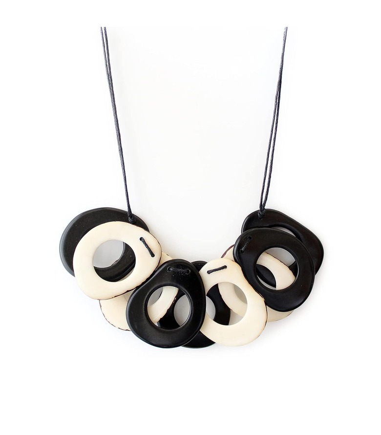 Handmade Necklace made of glass & tile beads Colors: white, black Approx. Size: 16 inches / 40 cm; width: 28mm