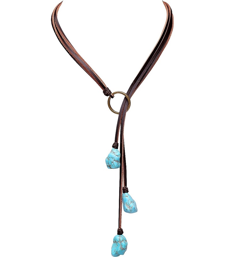 Handmade Leather Necklace made of glass & tile beads Colors: brown, blue Approx. Size: 32 inches / 80 cm; width: 12mm