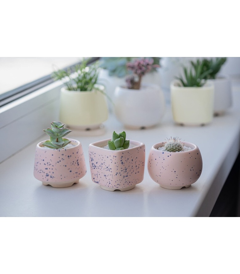 Handmade Pot made of ceramic & pottery Colors: white, pink, blue Approx. Dimensions: Height 2 inches; Diameter 2 inches